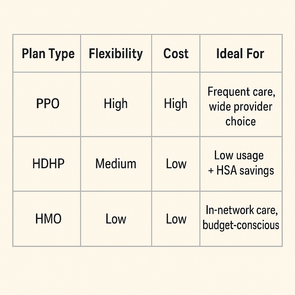 • High-Deductible Health Plans (HDHPs) paired with Health Savings Accounts (HSAs)