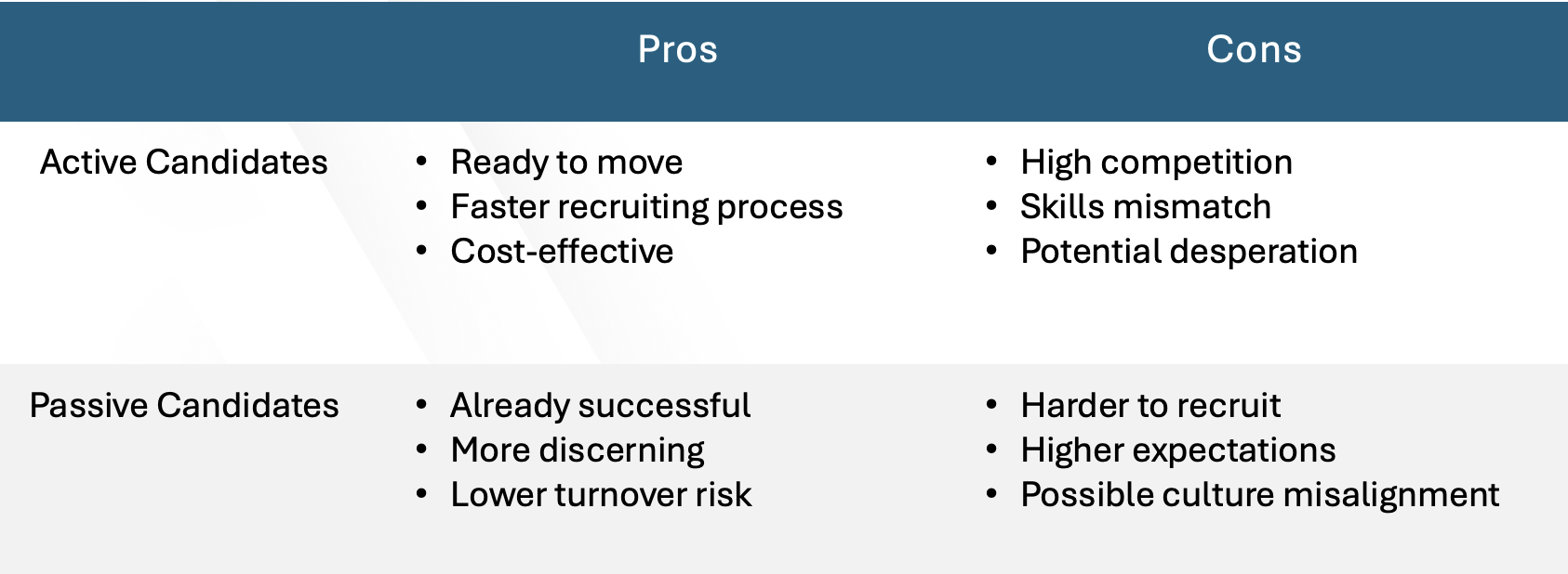 Pro Tip: A strong recruiting plan includes a mix of strategies and candidate types. Don’t overlook the hidden potential of passive candidates.